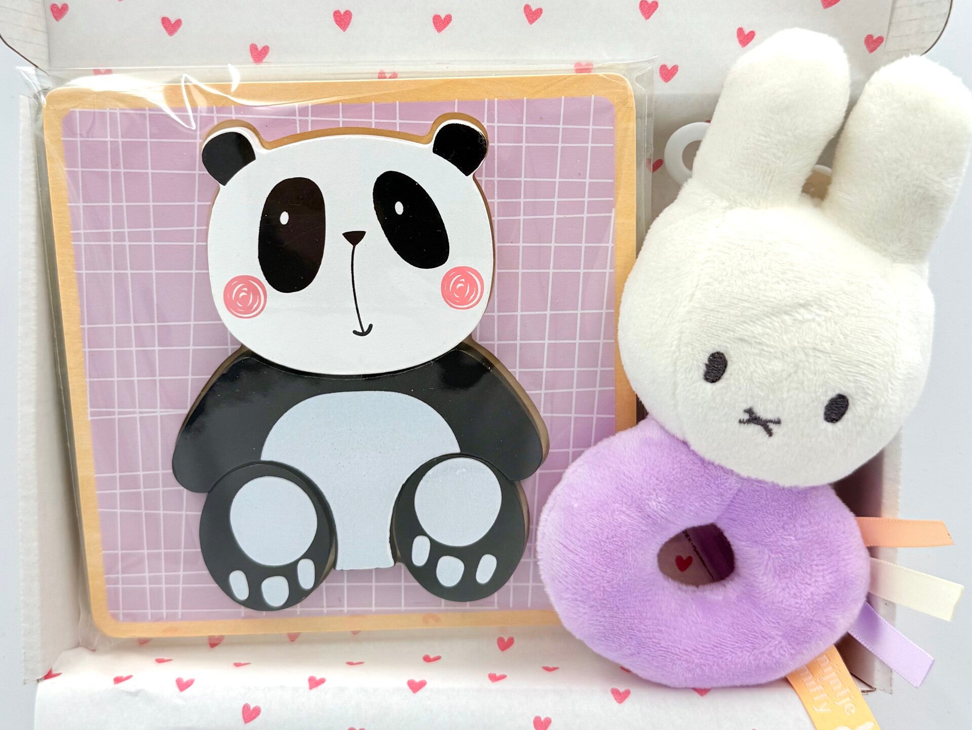 Kraamkadootje Saar | Nijntje rammelaar | Houten puzzel met panda | Kaartje naar keuze
