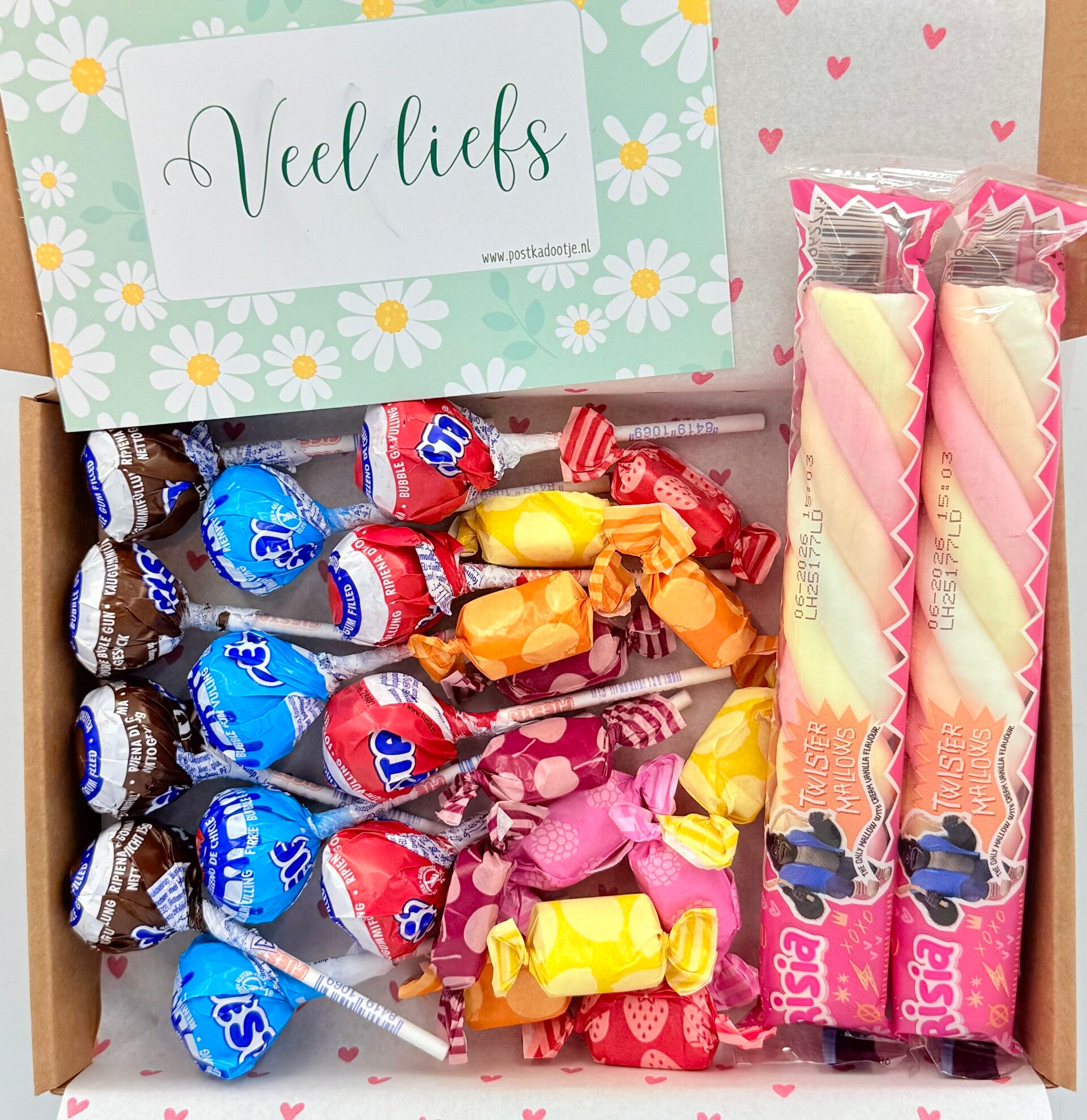 Postkadootje Candy | 12 lolly's | Fruittoffees | Spekkies | Kaartje naar keuze
