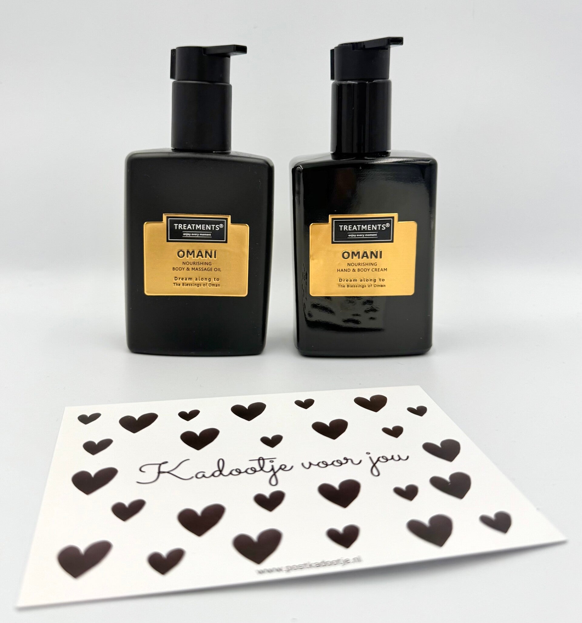 Postkadootje Omani | Treatments hand en body cream | Body en massage oil | Kaartje naar keuze